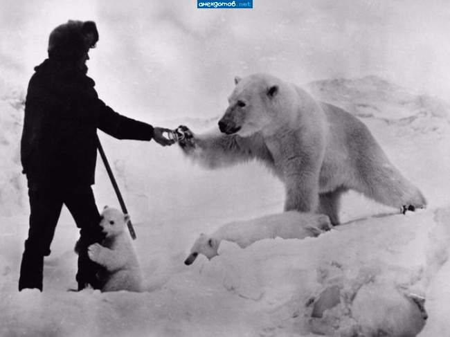 Белого медведя с рук можно покормить всего два раза — один раз левой, второй раз правой!