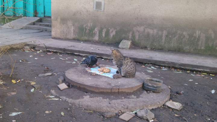 Я рассматриваю кормление голубя как инвестицию (Кот)